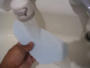 サンディングが終わったら水洗い。 スタイロの”粉”がきれいに取れます。 |