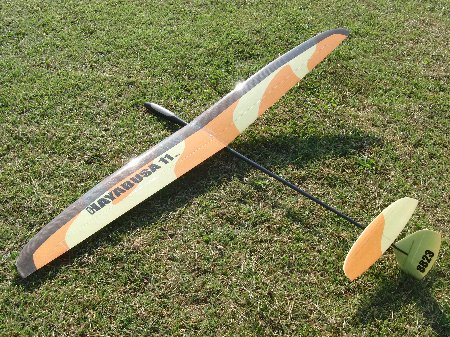 主翼重量トリミング後 59.6g。 胴体(メカ共)が120g程度で仕上がるとすると、だいたい240gになるでしょう。 |
