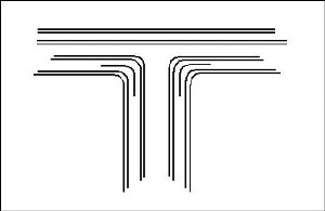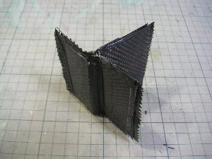 今回のPLY数は左図の通り。2重線は2枚貼り合せを示しています。 160g/uカーボン×8PLY、曲がり部には198gカーボン×2PLY×2 これで十分な強度が得られました。 |