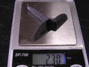 ハンドリューターで仕上げて完了。根元は削らず、先端に行くに従って少し薄くします。 今回は2.3gまで削りました。 |