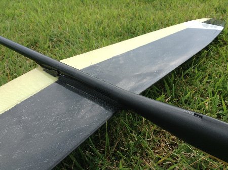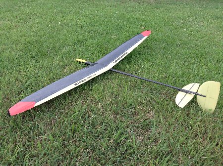 うちわのように大きい垂直尾翼(2.00sdm)はランチ時のヨー安定に 小さめの水平尾翼(2.14sdm)はランチ時の抗力低減に寄与していると思います。 水平尾翼はブームの下側に取り付けられています。 ■胴体