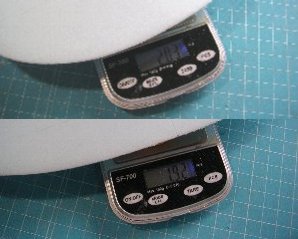 途中の工程写真は省略。 コア接合+整形後の体重測定:18.82g 軽い! 標準翼(21.5dm2)だと22g以上はあるので、コアの状態で片翼3gは軽い。 |