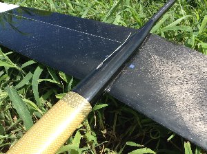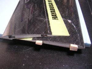 水平尾翼 カーボンキュアシートの補強スパーに加え、巾5mmのカーボンテープを全巾に入れています。カーボンテープはヒンジラインに掛からないように注意します。 水平:5.67g |