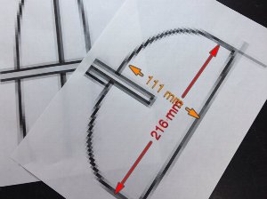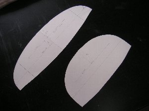 尾翼の型紙を切り出します。2つ折りにして切り出しで左右対称にします。 結局Snipeと殆ど同じにしました。 |