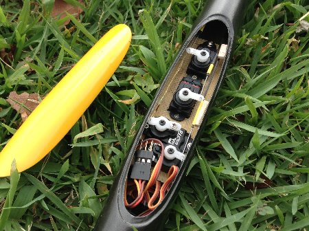 水平/垂直尾翼はトーションバー方式の糸引きリンケージ ■重量 通常仕様は250g(翼面荷重12.7g/dm2)、後から発売されたLightバージョンは230g(翼面荷重11.7g/dm2)