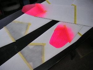 完成写真。 ※樹脂作業中は手がベタベタなので写真はありません。悪しからず。 CarbonLineのピンホールを防ぐ為に、江崎模型の翼紙貼り。 最近のシリーズは軽量化の為にエルロン部分は1.0ozのアラミド。 いいあんばいに上がりました。 |