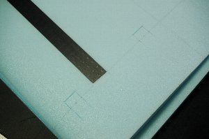 主翼接合前にネガティブコアを接合してベッドを作ります。 段差がある場合は、画用紙を貼るなどして、高さ調節をします。 |