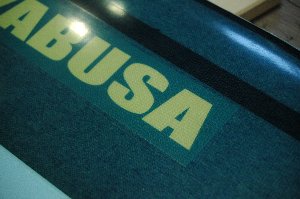 ネーム部分のアップ。 写真だとかなり色が違って見えますね。実物はもう少しなじんでいます。 |