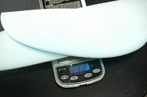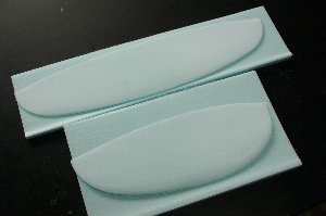 成形完了。 水平尾翼は従来より5%小さくしました。モーメントアーム(取り付け位置)を従来よりを大きくするつもりです。面積が小さい分抗力が減ります。 垂直尾翼はデルタ型から一般的な形状に変更。水平尾翼取り付け位置を後ろにずらし易くする為です。 |