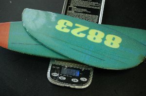 尾翼コアは2枚で4g以下が目標。 今回は3.7g |