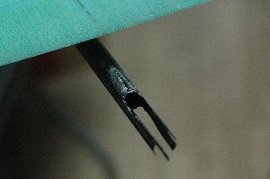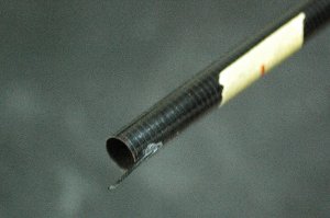 内径1.5ミリのアルミパイプの先を尖らせて0.8ミリのカーボンロッドに被せて差込み、つついたり回したり・・でガリガリと外します。 アルミパイプは長さが30センチしかなかったので、内径2ミリのカーボンパイプに差し替えて奥のほうも丁寧に、大胆に根気よく瞬間接着剤を剥がします。 淡々とやっているうちにきれいに剥がれました。ε=( ̄。 ̄;A フゥ… それにしても、思い込みって恐ろしいものです。(ノ_-;) |