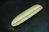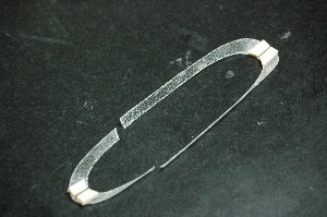 ハッチの内枠。 200gのガラスクロス+エポキシ樹脂でポッド用の雄型を用いて製作し、写真のようにドーナッツ状に切り出します。ハッチのロッドを差込むサヤをバルサで構成しておきます。 写真のように7:3位でカットし・・ |