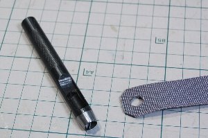 上端はプロポに穴を開けることなく取り付けるためにスイッチのナットで挟み込みます。(このスイッチには指が回らなくなりますので飛行中は操作できません) ホルダーベルトは化繊のベルトを使用。皮細工用のポンチで穴を打ち抜きます。抜け落ちの心配がありましたのでスイッチの大きさより少し小さめに開けました。 切断面を半田ごてで溶かしてホツレ止めします。 |
