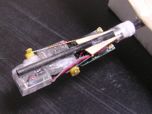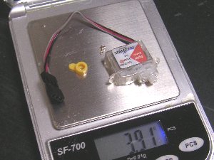 このサーボはまともに動きます。(トリムの1コマに反応するかどうかで 解像度を試す事が出来ます) 重量はホーン込みで3.91g。 JRコネクタはカットして受信機の裏面に直接半田付けしました。 |