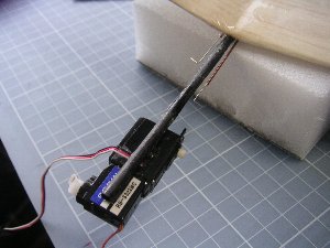 サーボはまたもや全取替え。 カーボンパイプに直接瞬間で接着します。 ただ、少し気になる点があります。 この分だけ主翼中央部に乱流を起こし、主翼揚力が妨げられます。 皆さんいろいろな工夫をされているのでまた参考にさせて頂こうと思います。 |