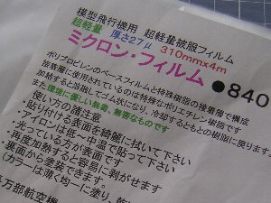 長万部航空機の”ミクロンフィルム”は1dm2あたり0.23g。”ミクロンフィルム”のほうが圧倒的に軽いです。 主翼面積4.5dm2だと2.07g増となります。この面積で2gであれば上出来です。 |