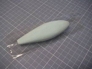 バッテリーパックに用いるシュリンクチューブを使用してポッドを作ります。 スタイロフォームからコアを削り出してシュリンクさせます。今回は上下2分割方式としました。 先端の部分はうまくシュリンクできなかったので別パーツ。厳密には3分割となりました。 |