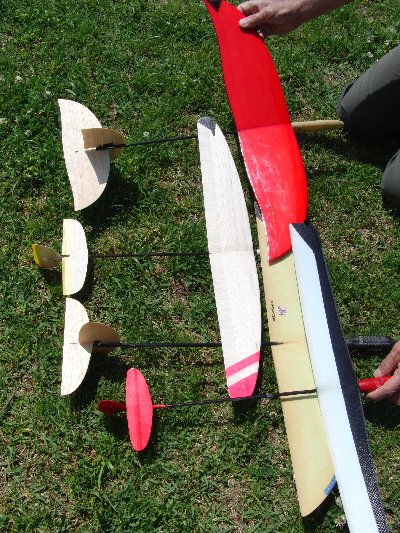 主翼・尾翼の大きさ、取り付け位置も様々です。 321で競争しましたが、少々風が強かったこともあって、機体性能の比較にはなりませんでした。 改良ポイントの評価と再対策