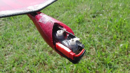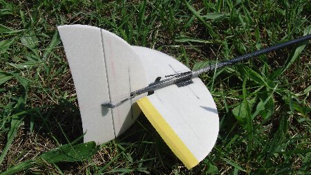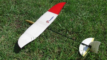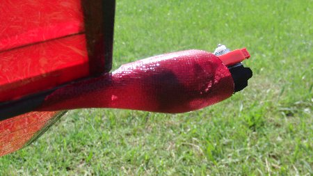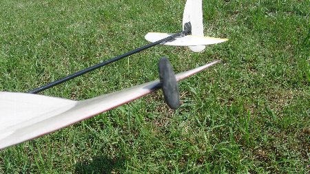 主翼面積増に伴い、水平尾翼容積不足気味の為、テープで面積増テスト