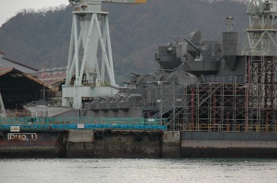 映画「男たちのYAMATO」映画ロケセットの一般公開を見学に行ってきました。場所は広島県尾道駅の向かいにある向島の日立造船の構内です。ちなみに大和が建造されたのは広島県呉市の呉海軍工場です。