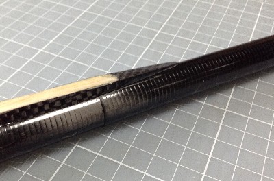 ジョイント部を目立ちにくくする為に、被せる側のエッジも少し削っておきます。 接続は中粘度瞬間接着剤。 エポキシ接着剤はパイプ表面への密着が悪いケースがありますので瞬間接着剤を推奨します。 尚、低粘度瞬間接着剤を使うとパイプを差し込む途中で固まってしまうリスクがありますので使用しないほうがよいでしょう。 |