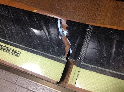 表面は裏面ほどに陥没はないですが、同様の破損状況でしたので上記と同様の補修を行います。 |