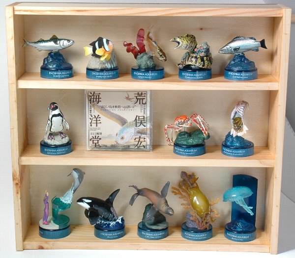 | 第一弾に続く第二弾。第一弾以上の出来だと思います。なぜか剣先イカに惹かれものが・・・。 第一弾と同じBOXサイズで納めたのですが、 No.18バショウカジキとNo.26ザトウクジラ (ホエールウォッチング)は背が高すぎて天井につっかえてしまいました。まっいいか(;^_^A |