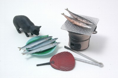 とても美味しそうに焼けています。七輪のすすけた感じもリアルです