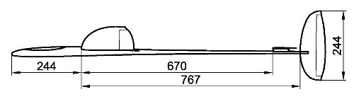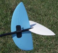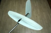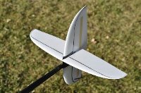 の考え方は素晴らしいと思います。 すなわち、進行方行に向かって左側に揚力が発生するような翼型にすることにより 経験的に最大翼厚は6mm程度必要です。 ---------------------------------------------------------------------------------- 垂直尾翼は滑空時の翼端失速を意識する必要が少なく、 むしろランチ時の特性を意識します。 ランチ時の強烈なヨー方向の応力への対抗し、かつ100km/hを超える速度での ---------------------------------------------------------------------------------- ■垂直尾翼の面積 市販機のディメンジョンを集めてみました。