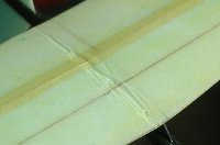 尾翼は「出来るだけ軽く」仕上げたい 尾翼が重くなると、ノーズにバラストを積む必要が出てきます。 また、質量が重心から離れる事でイナーシャ(慣性)が増し、操縦性が悪くなる方向に振れます。 ---------------------------------------------------------------------------------- 尾翼を軽く作るのはとても重要なことですが・・・ 重量と強度はトレードオフの関係にあります。 座屈で済めばよいですが、脱落してしまった例を幾度も見た事があります。 「軽さ」と「強度」が両立する最適バランスを求める必要があります。 ---------------------------------------------------------------------------------- 軽量化の際の注意事項があります。 ・面積不足に注意 面積を小さくすれば確実に軽くできます。 ・翼厚を薄くしすぎない ・樹脂量を減らしすぎに注意 樹脂量が少なすぎると、コアへの付着力不足で剥離する場合があります。 ---------------------------------------------------------------------------------- それで、結局どうすればよいかというと、なるべく合理的な方法で補強を行った上で ■適切に管理した上で樹脂量を最小にする。 ■重量比強度が高い補強方法で強度を確保する。 ---------------------------------------------------------------------------------- ■尾翼重量の目安 前述のSALpeterのサイズを基準として その他に尾翼を軽く作る方法として、面積を少し小さめに、最大翼厚を少し薄めに作ることで 参考までにm垂直尾翼に使用している翼HT23は型データに従え最大翼厚は6.5ミリですが