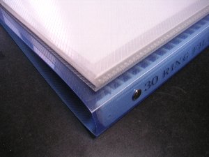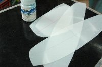 尾翼のバギングプレートは面積があまり大きくないのでいろいろな材料が使えます。 総合的には、少々手間はかかりますがPP製バインダー が良いでしょう。