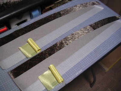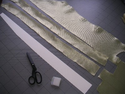 エルロン部分は35g/m2のアラミドを使用します。現在のところ繊維方向はバイアスに使用しています。