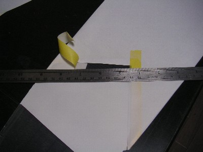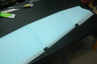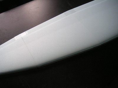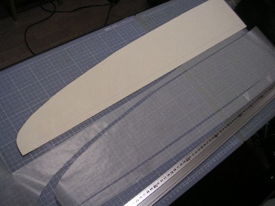 最後にヒンジラインを軟らかい鉛筆などで書き込みます。これは、コア側に樹脂を塗る際の目印となります。 それから、前縁にカーボンテープを貼ります。 前縁用カーボンテープの作り方は次に紹介します。 |